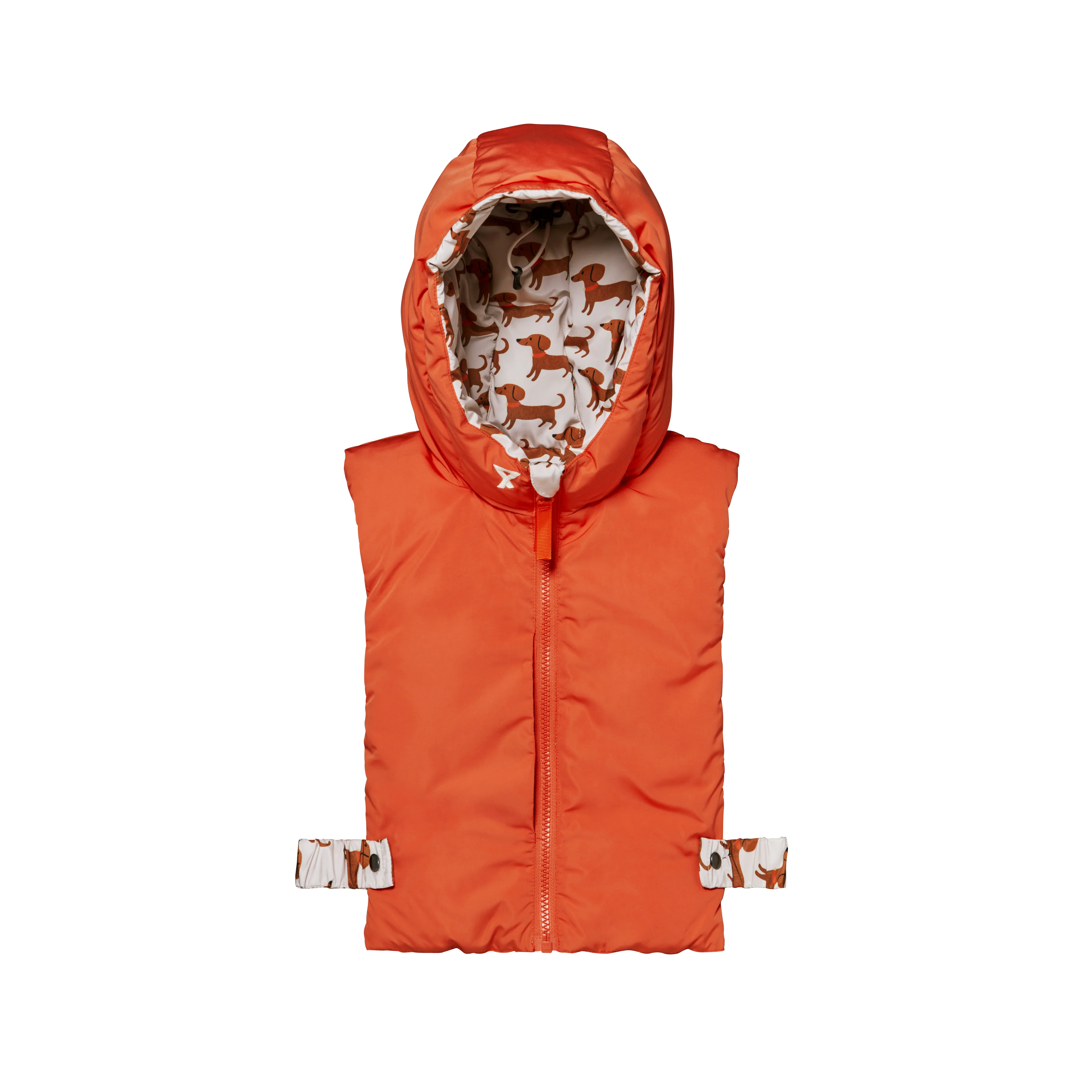 Capuche doudoune enfant motif teckel beige et orange