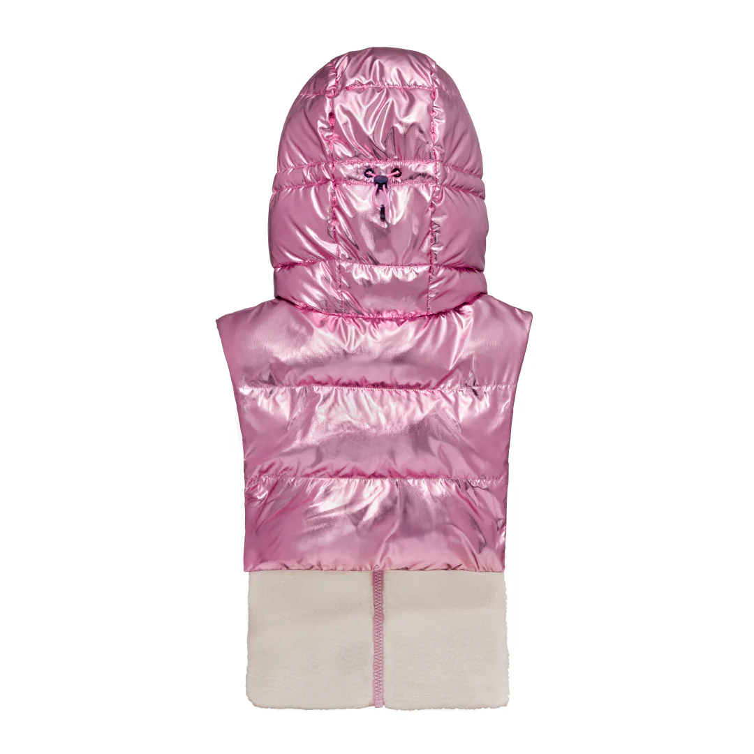 Capuche doudoune rose métallisé réversible sherpa